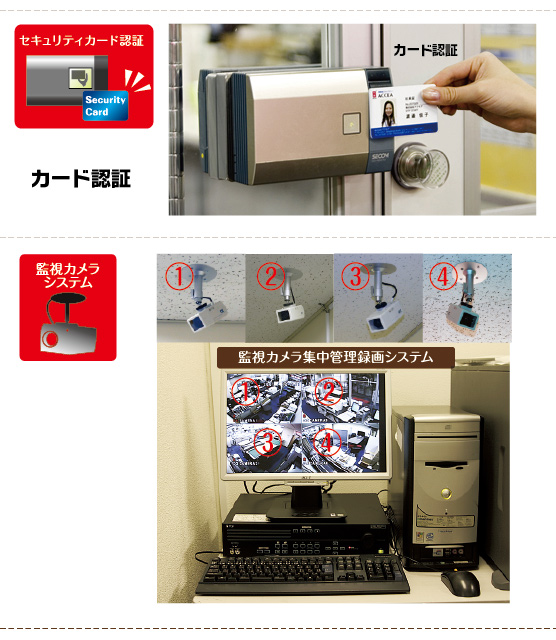 ○各店舗内にはICカードにより当社従業員のみが入室化、さらに入退出もすべてのログを記録管理